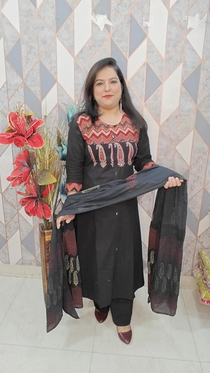 Designer Cotton Suit with Handwork – Black